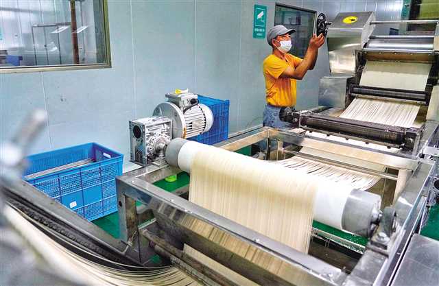 云陽陳大毛面業(yè)生產(chǎn)車間工人正在巡查 攝/崔力
