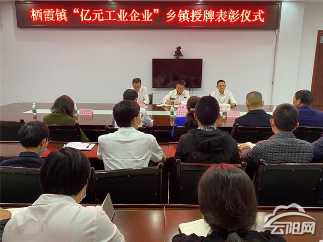 云陽網訊(記者 黃美琪)4月28日,縣委常委、政法委書記劉桂虎為棲霞鎮授予“‘億元工業企業’”鄉鎮”獎牌。