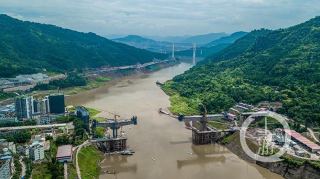 航拍建設(shè)中的鄭萬(wàn)鐵路控制性工程 彭溪河多線特大橋