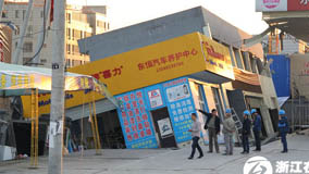 杭州一加油站房屋傾斜 一樓明顯下陷